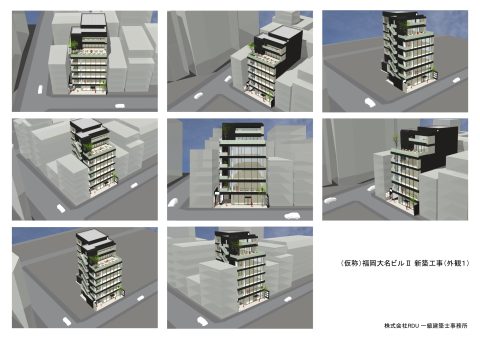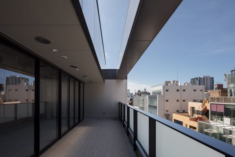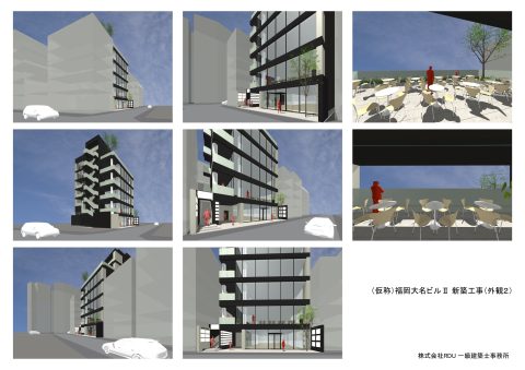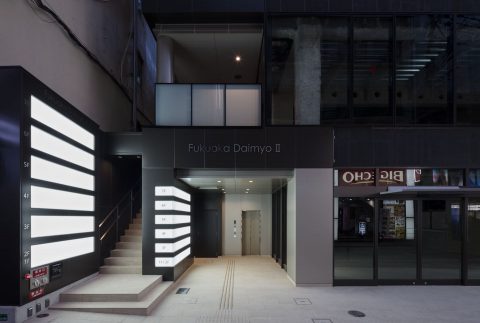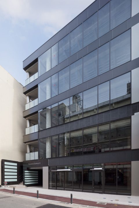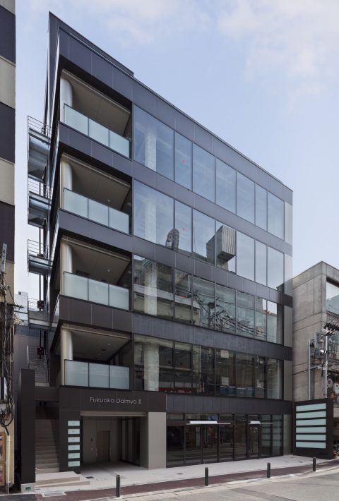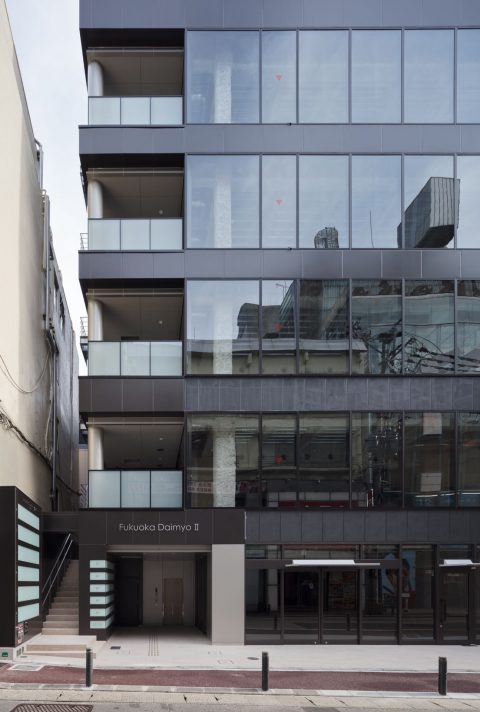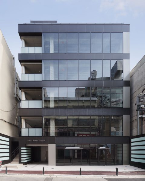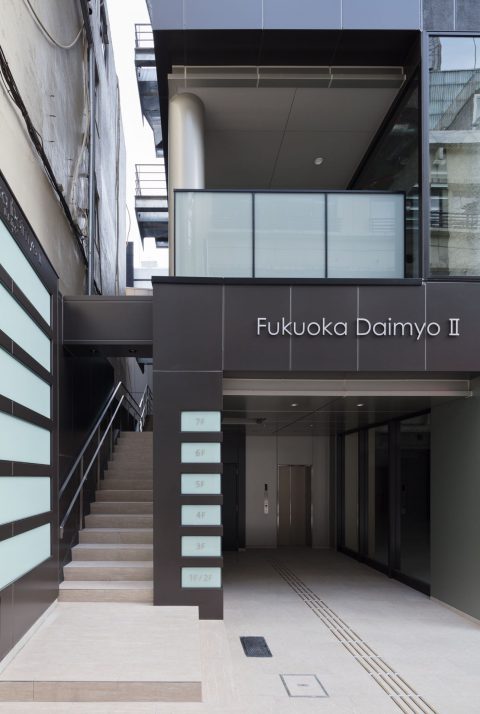 福岡大名ビルⅡ:2020 商業施設 場所 福岡市中央区大名 規模 鉄骨造 地下1階7階建 面積 1564.73m² (473.33坪) 施工 株式会社 北洋建設 福岡屈指の商業地に建つ、住友商事(株)の手がけるテナント・オフィスビル第2弾。地下1階・地上7階建てで6階、7階には専用のルーフバルコニーを設ける。大名エリアを象徴するような、感度の高いテナントの誘致を目指している。[撮影:針金建築写真事務所]