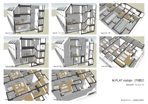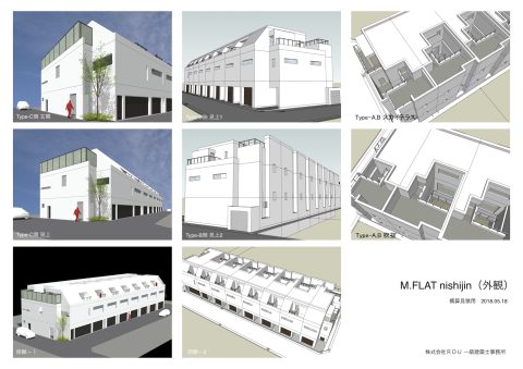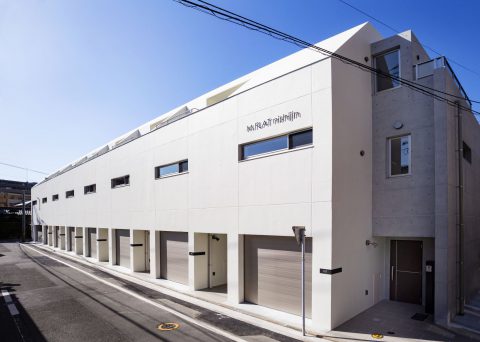 M_FLAT nishijin:2019 住宅施設 場所 福岡市早良区西新 規模 RC造 地下1階地上3階建 面積 1222.67m² (369.85坪) 施工 株式会社 大和建設 全戸長屋形式の地上3階、地下1階建て3LDKタイプの賃貸マンション。交通アクセス良好で周辺は生活関連施設が多く、静かで落ち着いた住環境が魅力。各戸に専用駐車場を有し、スカイテラスを設けた戸建て感覚のライフスタイルが楽しめる。